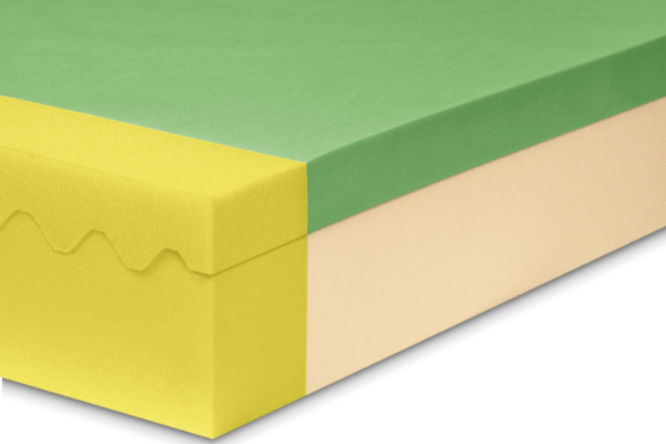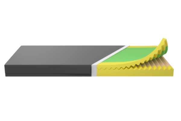 Wave Contour Cut: 2 foam layers are not glued. This enables uniform distribution of the contact pressure without hard seams and helps to provide higher pressure relief.Edge Zone Reinforcement: Stable reinforcement on both long sides helps to the relief of self-mobilization of the patient and prophylaxis of falls.