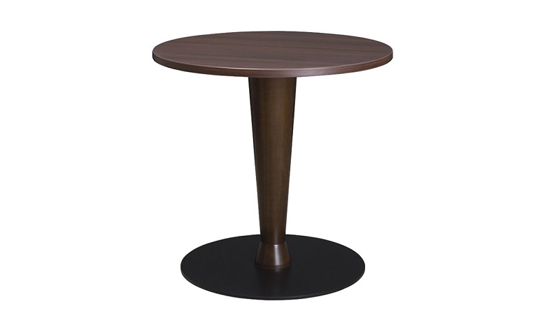 Table ronde avec colonne centrale. Table d'une grande stabilité, différentes tailles disponibles. Plateau avec revêtement mélaminé ou HPL. Socle en métal thermolaqué.