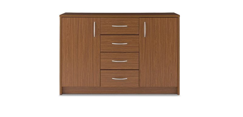Commode met 4 laden in het midden evenals twee grote deuren aan de rechter en de linker zijde. De commode biedt veel opbergruimte voor grote en kleine voorwerpen en kan